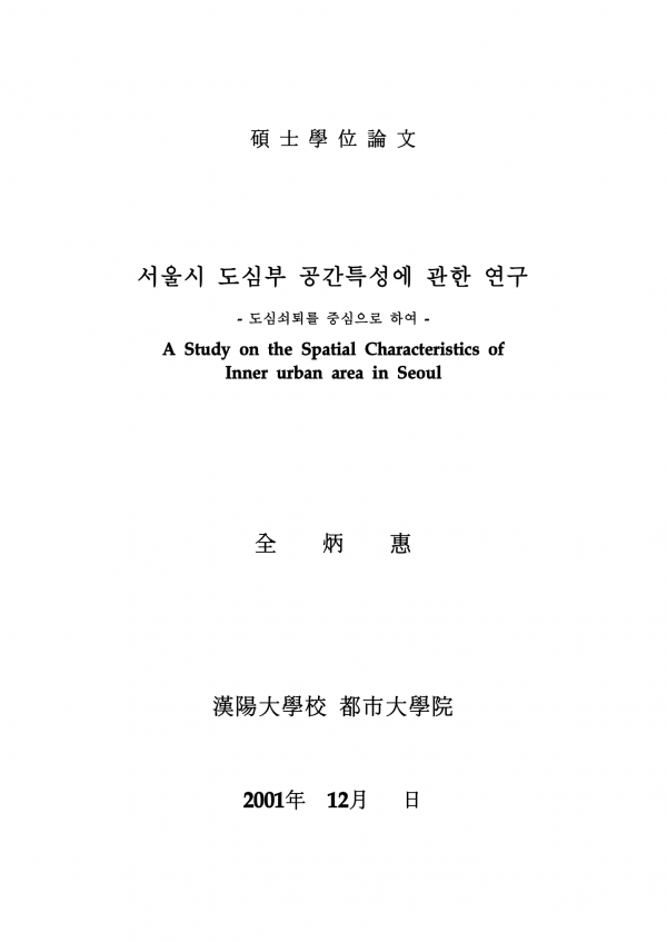 서울시 도심부 공간특성에 관한 연구 도심쇠퇴를 중심으로 하여 > thesis_master