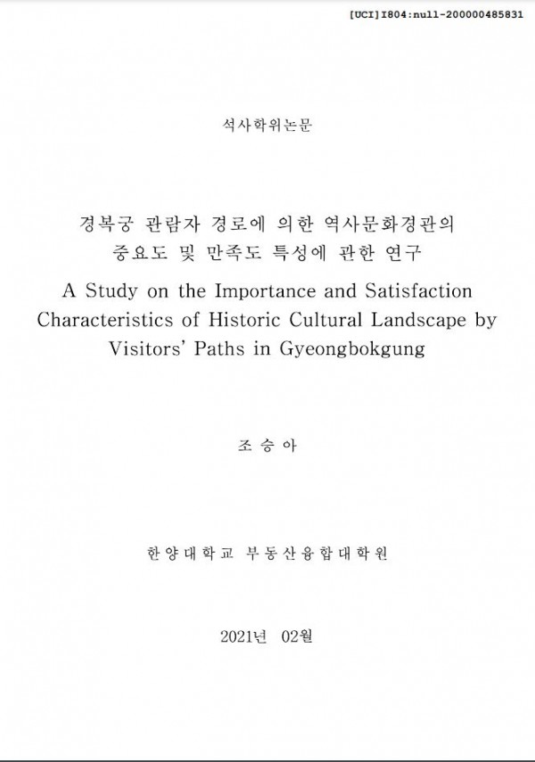 경복궁 관람자 경로에 의한 역사문화경관의 중요도 및 만족도 특성에 관한 연구 > thesis_master