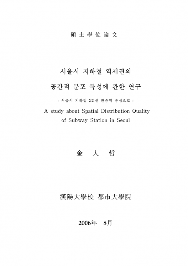 서울시 지하철 역세권의공간적 분포 특성에 관한 연구 - 서울시 지하철 2호선 환승역 중심으로 > thesis_master