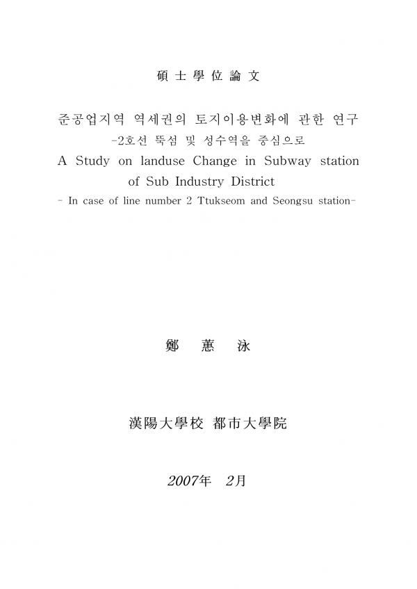 준공업지역 역세권의 토지이용변화에 관한 연구 -2호선 뚝섬 및 성수역을 중심으로 > thesis_master
