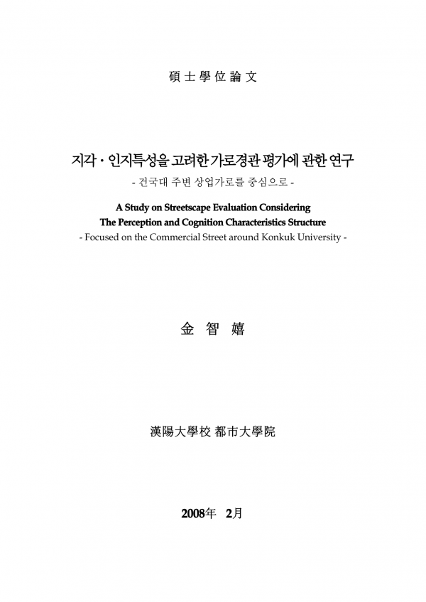 지각·인지특성을 고려한 가로경관 평가에 관한 연구 > thesis_master