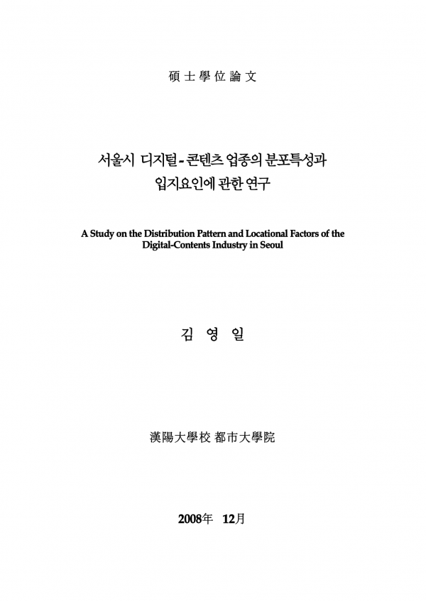 서울시 디지털-콘텐츠업종의분포특성과 입지요인에관한연구 > thesis_master