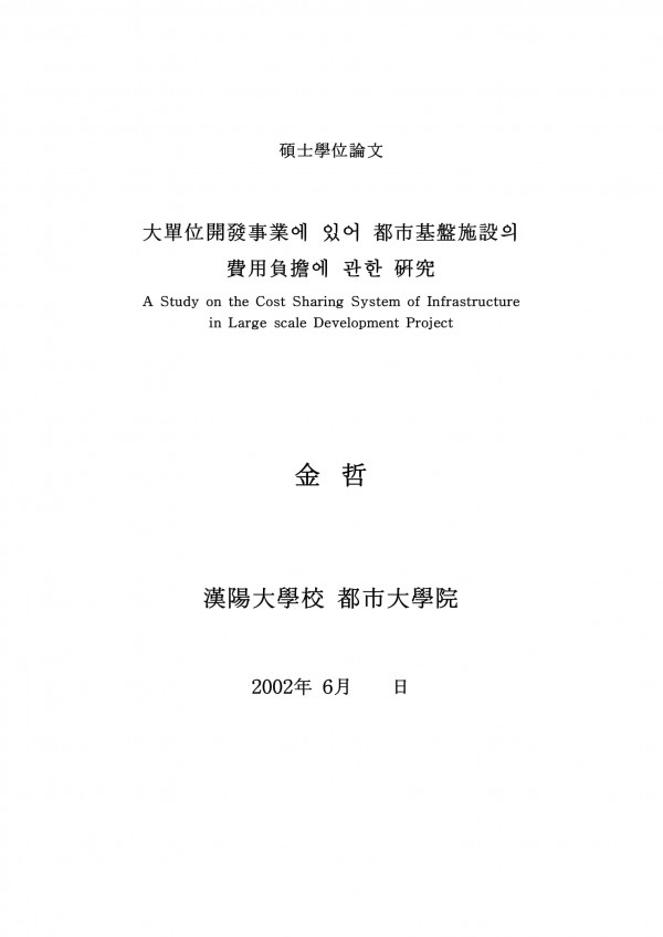 대단위개발사업에 있어 도시기반시설의 비용부담에 관한 연구 > thesis_master