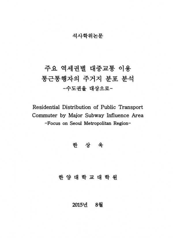 주요 역세권별 대중교통 이용 통근통행자의 주거지 분포 분석 수도권을 대상으로 > thesis_master