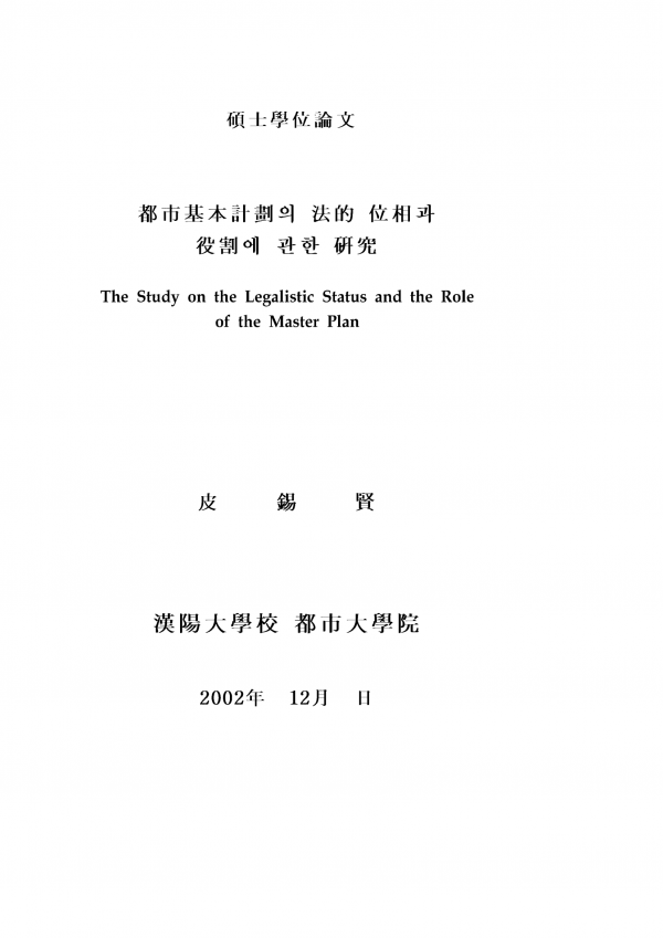 도시기본계획의 법적 위상과 역할에 관한 연구 > thesis_master