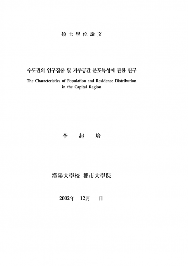 수도권의 인구집중 및 거주공간 분포특성에 관한 연구 > thesis_master