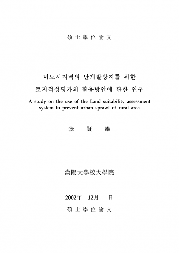 비도시지역의 난개발방지를 위한 토지적성평가의 활용방안에 관한 연구 > thesis_master