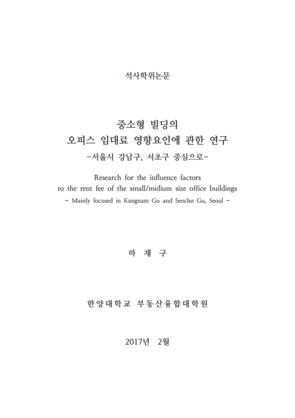 중소형 빌딩의 오피스 임대료 영향요인에 관한 연구 > thesis_master