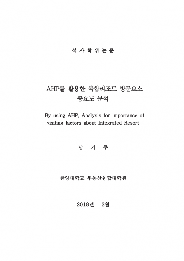AHP를 활용한 복합리조트 방문요소 중요도 분석 > thesis_master